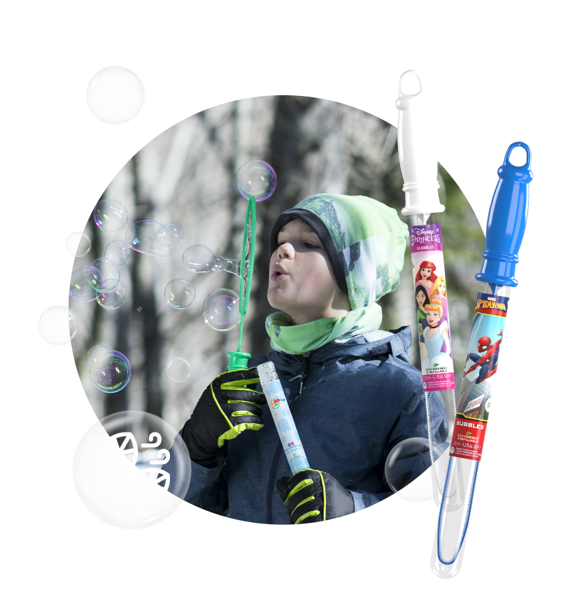 Un’attività perfetta per ogni stagione? Le bolle di sapone Bubble World! Sì, anche d’inverno. Grazie alla loro formula di alta qualità, ipoallergenica certificata, le bolle di sapone Bubble World sono sicure anche sulle pelli più delicate. Disponibili in tante grafiche colorate e divertenti, le bolle di sapone sono perfette soffiate anche sulla neve. Infatti, le bolle di sapone non sono solo un gioco estivo! Durante l’inverno, possono trasformarsi in un’esperienza ancora più affascinante: