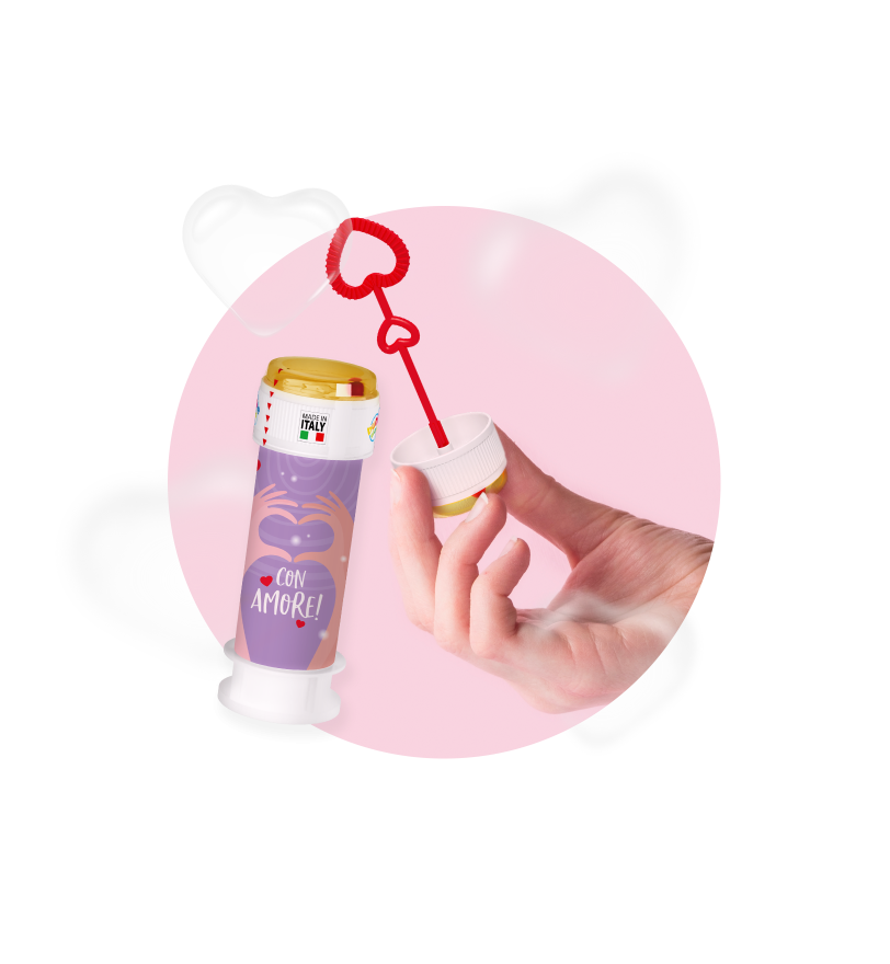 La bolla di sapone Love è l’accessorio ideale anche per quei cuori solitari che vogliono dedicarsi un momento di spensieratezza il 15 febbraio, la giornata di chi si vuole bene senza compromessi. Le bolle di sapone hanno infatti la straordinaria capacità di riportarci all’infanzia, quando bastava poco per essere felici. Donarsi una bolla di sapone significa regalarsi sorrisi e attimi di leggerezza.